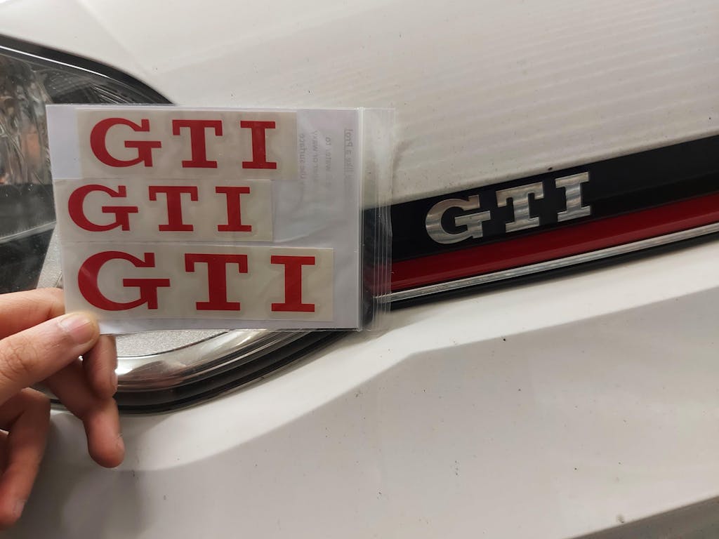 These decals align precisely over the original factory-installed GTI badges on the front and back of your car. The overlay decal is a simple, effective way to switch your badges colour without needing to take apart and paint the badge itself. Furthermore, these decals will endure and can be removed easily, allowing you to alter the colour whenever desired.